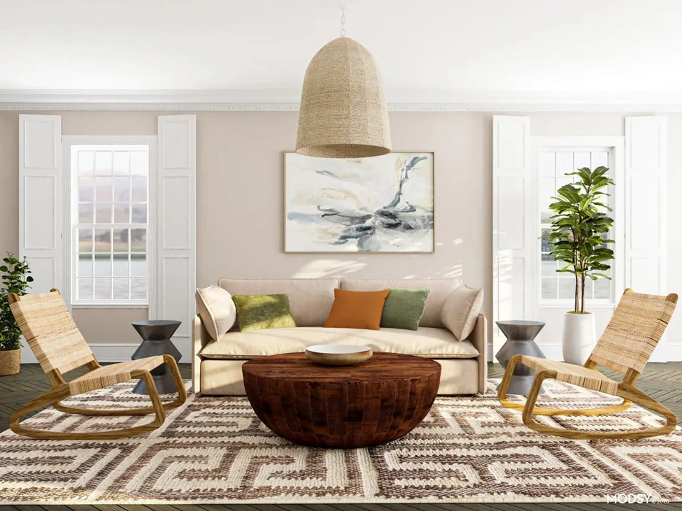 В природе формы перетекают одна в другую, и таким же образом можно оформить гостиную. Не стоит беспокоиться о симметрии и даже о распределении предметов в интерьере. Отлично будет смотреться открытое пространство.